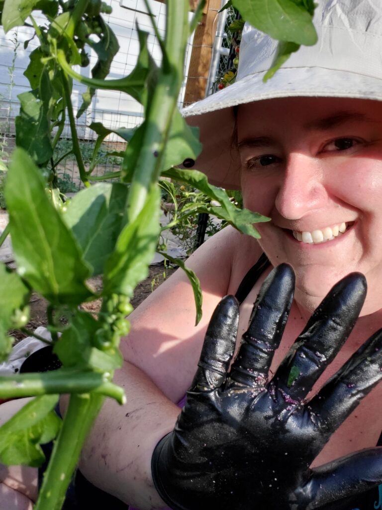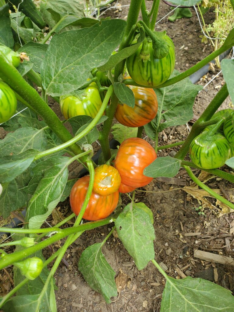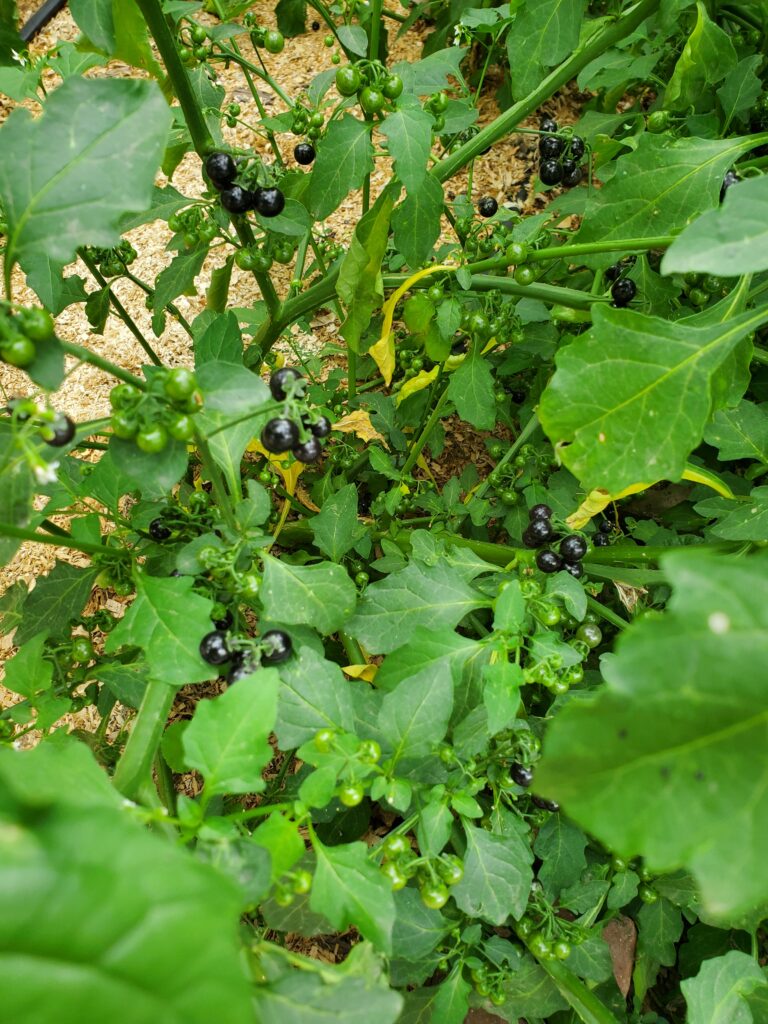 Still learning about these; the process will continue into next year as we try some additional varieties. This year we grew a variety called Chichiquelite. The plants have produced lots of berries and they seem to be getting bigger and more flavorful as we move further out of the mid summer heat. These are a sticky mess to harvest but turned into some tasty baked treats. Remember if you choose to grow these, only eat fully ripe berries. Love the purple color!